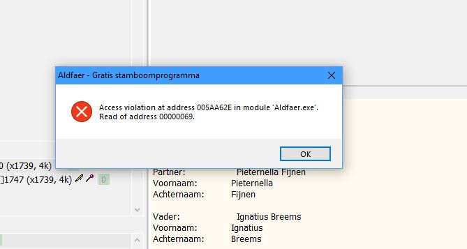 Heeft u wel eens Menu > Stamboom > Bestandscontrole en -reparatie gedraaid?