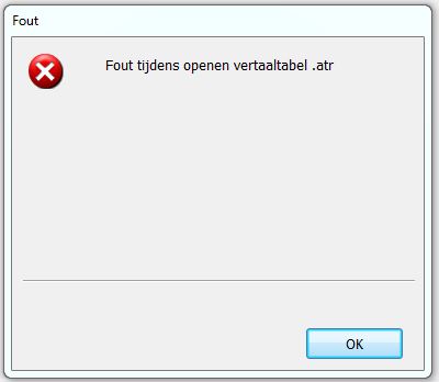 Bij opstarten Aldfaer 9 verschijnt een venster met de tekst : Fout tijdens openen vertaaltabel.atr