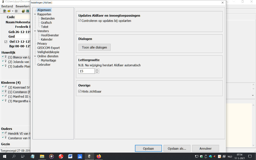 Ik vermoed dat u uw Windows schermresolutie op 150% heeft staan èn in Aldfaer de lettergrootte op 15. In dat geval passen de letters niet meer exact en wordt e.e.a. over elkaar geplakt.