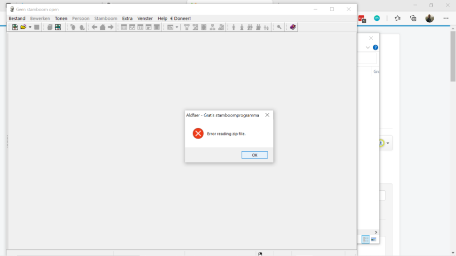 Ik heb een veiligheidskopie *.alx van dec 2019, en Aldfaer 8.1 net op nieuwe laptop gezet. Bij openen van de veiligheidskopie krijg ik de melding dat er een error is met openen van zip file.
