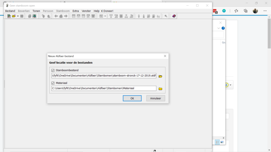 Als uw stamboom en veiligheidskopieën zich in de juiste mappen bevinden, respectievelijk C:\Users\uwnaam\Documents\Aldfaer<Stambomen en C:\Users\uwnaam\Documents\Aldfaer\veiligheidskopieën, dan zitten ze veilig.