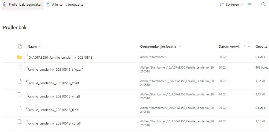 Knipsel1: dit is een voorbeeld van de verwijderde bestanden.