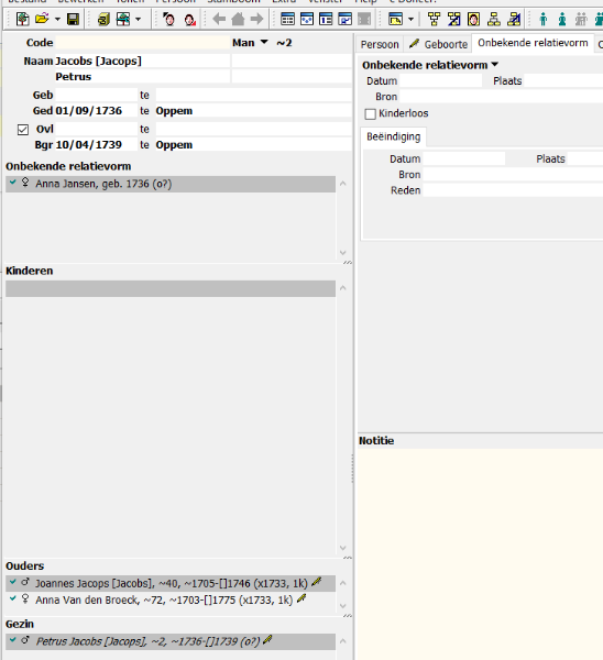 In bijlage het resultaat na het ontkoppelen van Anna Jansen die ik voordien aan Petrus Jacobs had gekoppeld. Een tweede maal ontkoppelen verwijdert de partner dan wel.