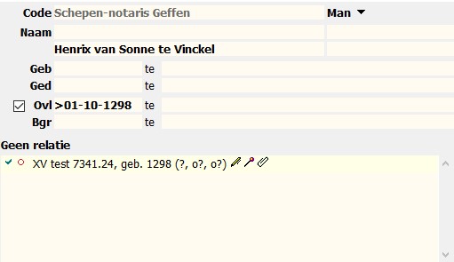 Werk hier niet met kleuren, rode kleur is referentiepersoon, waar ik bij de persoon tab in de notitie e.e.a. zet hoe ik dit schepen en notaris archief inzichtelijk heb gemaakt. Heb heden nog slechts 9 van de 879 actes gedaan