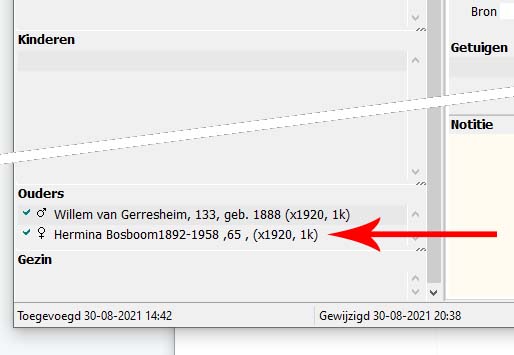 In het hoofdvenster worden de naam en gegevens van de moeder niet juist weergegeven. (zie rode pijl in de bijlage)
