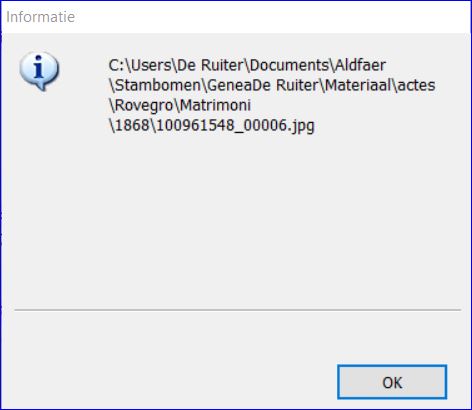 3. Een bijschrift bij de koppeling van de foto aan Giuseppe Fantoli. Dat zie je staan in het hoofdvenster als je Giuseppe Fantoli tot hoofdpersoon maakt.
