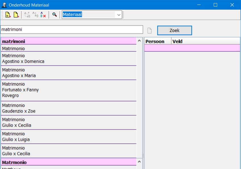 Wijzigen van Materiaal tekst/onderschrift kan alleen in het tabblad Persoon bij de betreffende persoon. Geen persoon = niet te wijzigen