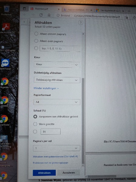 Pas nu kan de printopdracht gegeven worden, al dan niet naar een echte printer of naar de Microsoft to PDF printer.