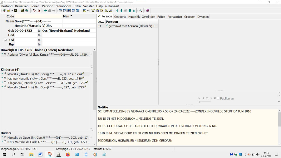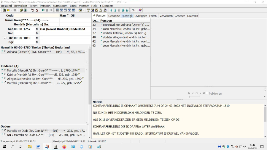 Met andere woorden het huwelijk is nog ingevuld zonder dat de Ovl vink actief was. Daarna is het Ovl vink actief gemaakt. en worden de kinderen niet meer getoond als er geen datum bij Ovl is ingegeven.