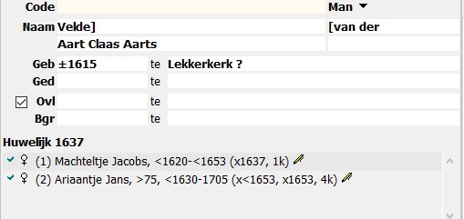 Mocht een persoon meerdere schrijfwijzen van de naam hebben, afwijkend van de geboortenaam, dan zet ik dat meestal in het notitieveld Persoon.