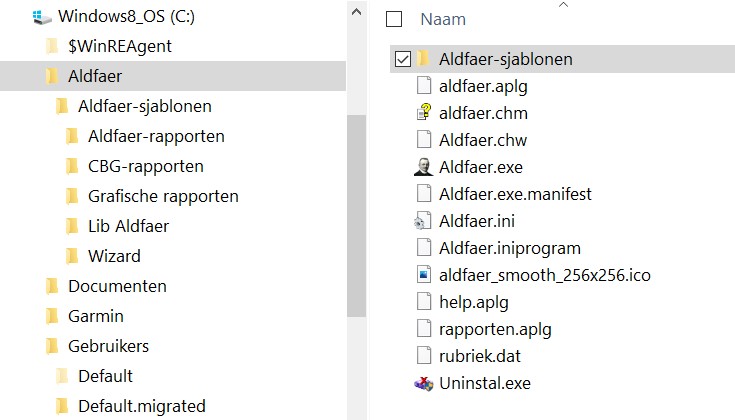 C:\Users\uwpcnaam\Documents\Aldfaer en daarbinnen te staan in de mappen: