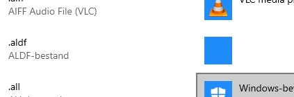 In Windows instellingen - 'Standaard-apps per bestand kiezen' verschijnt geen keuzemogelijkheid meer om te kiezen voor 'Aldfaer.exe'.