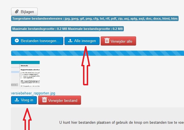 Eddy, ik denk dat u bij het toevoegen van bijlagen aan een bericht vergeet om op de knop te drukken waardoor het in uw bericht wordt opgenomen. Zie de knop waar de rode pijl naar verwijst.