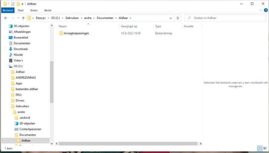 Stuur eens een knipsel van de inhoud van de map C:\Users\andre\Documenten\Aldfaer op.