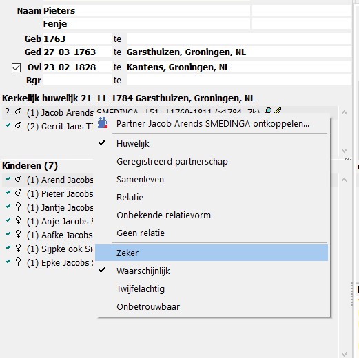 Als ik later overtuigend bewijs heb dat ik de correcte personen gekoppeld heb dan wil ik die status wijzigen in 'zeker'.