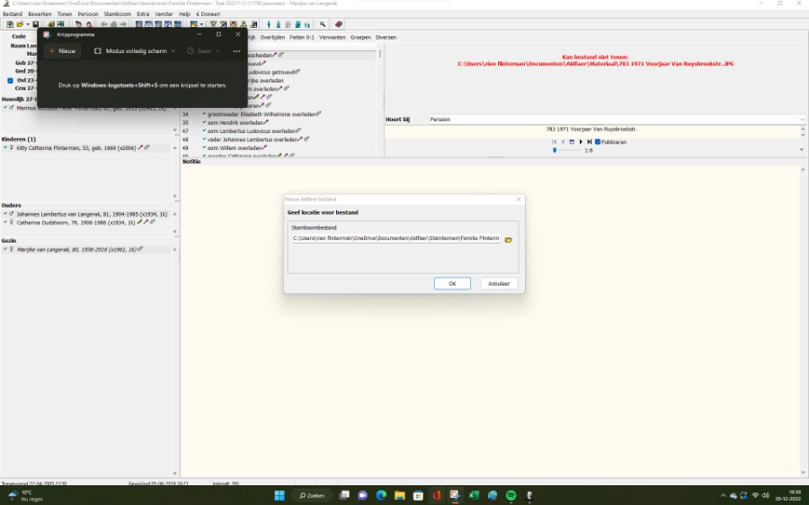 De schermafdruk is niet goed leesbaar. Ik vermoed dat uw stamboom in OneDrive staat, wat niet aanbevolen is, of een veiligheidskopie wil openen vanuit OneDrive.