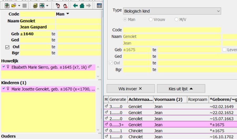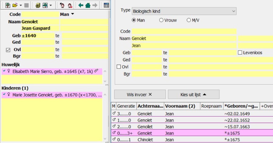 Ik wil de kinderen onder 0 aan het tweede huwelijk toevoegen, echter als ik ze kies uit de lijst wordt er automatisch nog een huwelijk toegevoegd per kind van Franchois met echtgenote 2.
