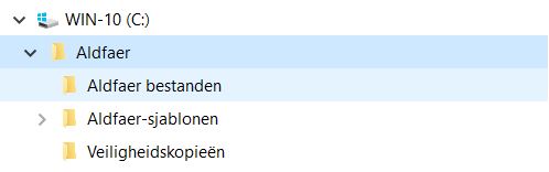 - de bijlage 'gegevensmap' de locatie van de submappen welke in C:\Gebruikers\uwgebruikersnaam\Documenten\Aldfaer\...moeten staan.