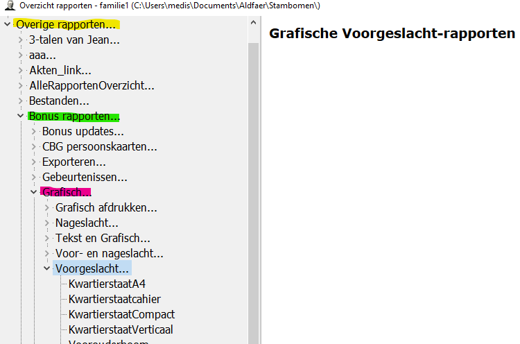 2. In de bonus rapporten zij een aantal grafische kwartierstaat rapporten mogelijk.