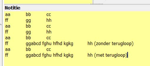 Als ik een Excel met automatische terugloop (carriage return) van de cellen in een notitieveld kopieer wordt dat gewoon op één regel getoond zonder de terugloop. Ongeacht de breedte van de cellen in een Excel wordt bij kopiëren in een notitieveld tussen de kolommen een vaste TAB tussenruime ingevoegd.