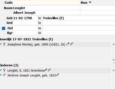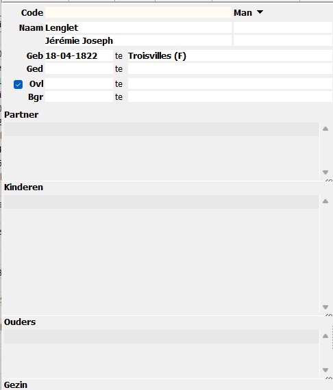 Ik voer het kind in in het scherm van een van de ouders met de rechter muisknop op het vak kinderen. In de bijlage een voorbeeld.