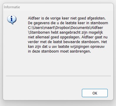 In de bijlage de melding die ik nu vrijwel altijd krijg als ik Aldfaer open(ik gebruik de nieuwste versie)
