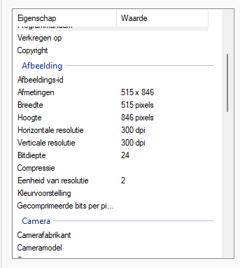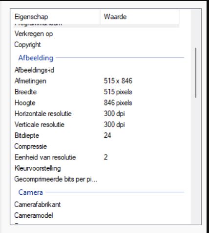 c) het soort afbeelding zoals jpeg of andere