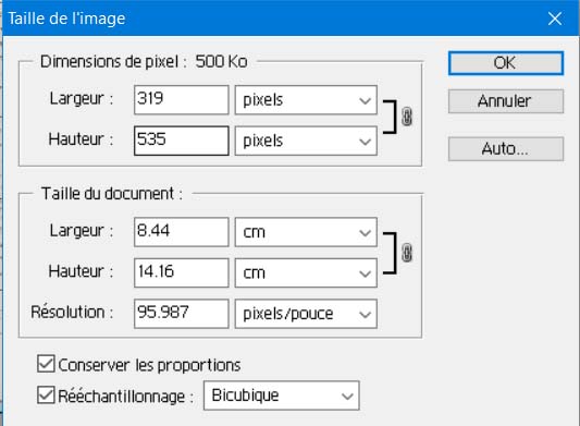 Waarom verklein je het document naar "postzegel formaat" 515x846 pixels bij 300 dpi? Dat is ongeveer 4.4 x 7.2 cm !!