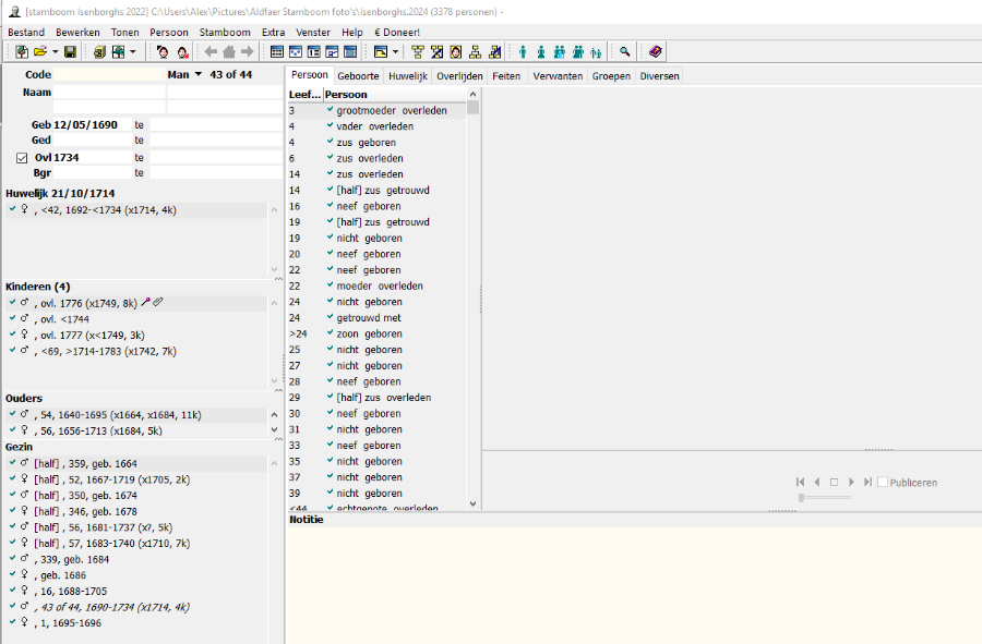 Het pad wat u gebruikt voor uw stamboombestand is wel heel erg raar.