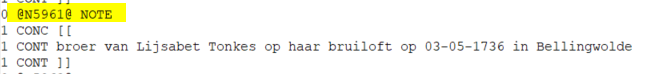 Met als gevolg dat Ancestris, maar tevens ELK ANDER programma, waar een Aldfaer gebruiker zijn Gedcom naartoe wil importeren, deze NOTE's verkeerd interpreteert.