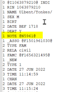 In Ancestris wil ik kijken of ze gewoon voor alle NOTE's die verwijzen naar een Entity of Event e.d. er standaard bij import een property NOTE van kunnen maken.