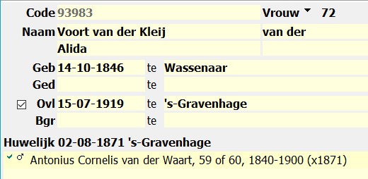 Overigens is Van der Voort geen achternaam maar een toenaam die bij geboorte van de vader van Alida aan hem werd gegeven door zijn ongehuwde moeder (ook Alida)