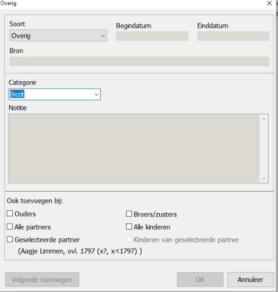 Als u met de rechtermuis klikt op LIVING dan krijgt u een keuzevenster met de vraag 'verwijderen'; dat betekent dan dat dat Overig feit niet meer bij de persoon staat.