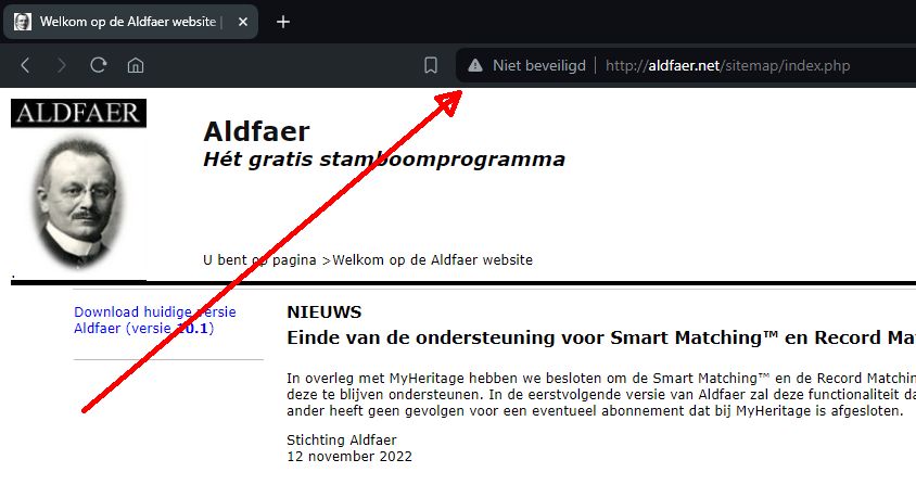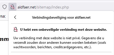 Cees bedoelt dat indien er gebruik wordt gemaakt van de website van Aldfaer via aldfaer.net/sitemap/index.php en er een opmerking staat dat Aldfaer niet beveiligd is.