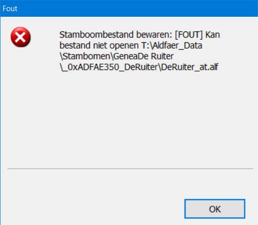 Verklaart ook waarom ik na wegklikken van die melding en de opvolgende melding het bestand normaal kon afsluiten inclusief opslaan en v-kopie en dat na wederom opstarten het uitgevoerde onderhoud niet verloren is en het bestand DeRuiter_at.alf opnieuw aangemaakt was.