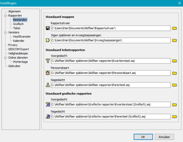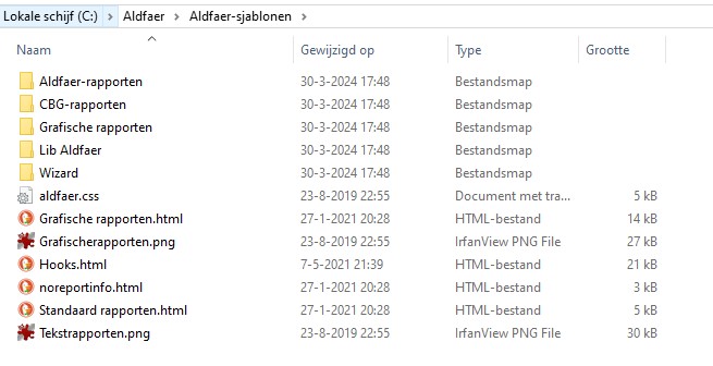 Bij de tweede bijlage kunt u de map Aldfaer_sjablonen bekijken of die bij u hetzelfde beeld geeft, dus ALLE regels moeten overeenstemmen.