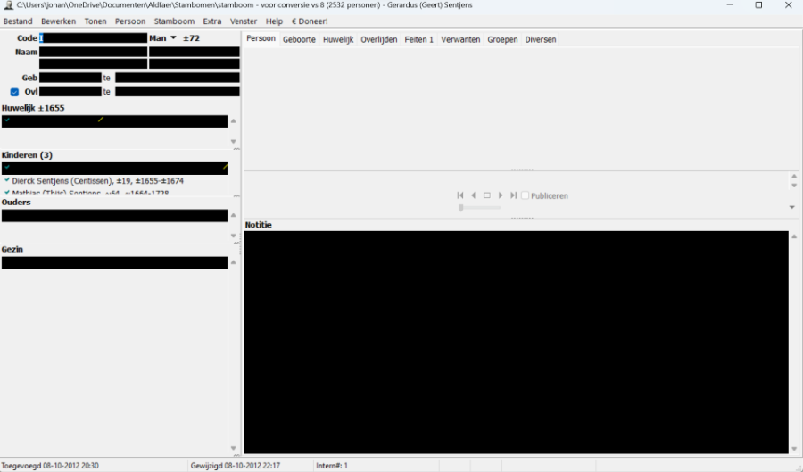 Ik heb de laatse versie van Aldfear opnieuw geinstalleerd op een nieuwe computer. En nu zie ik zwarte balken. Terwijl hij wel het bestand heeft geimporteerd. Zie bovenin het scherm het totaal aantal personen.