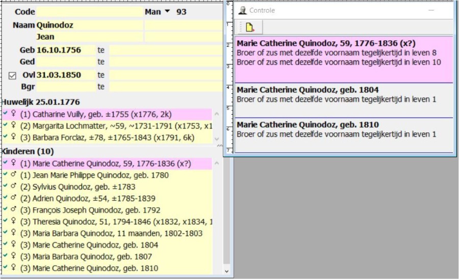 De getoonde situatie is ondersteund door de geboorte/doop actes van de kinderen en huwelijk actes van de betreffende echtparen. Wat ik wil aangeven is dat er niet gekeken wordt of in een dergelijke situatie deze kinderen uit één en dezelfde relatie afkomstig zijn. Iets wat naar mijn mening de voorkeur heeft.