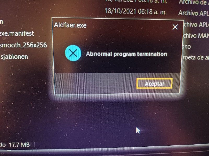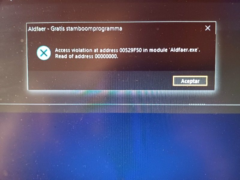 Het resultaat is helaas hetzelfde, het programma kan niet geopend worden vanwege een fout in Aldfaer.exe.