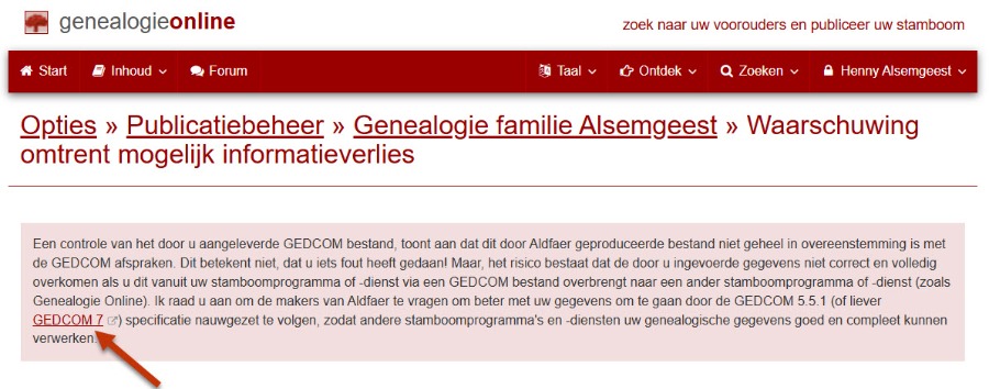 Het is dus interessant van Genealogieonline te horen op welke punten zij een andere interpretatie hebben van de gedcom specificaties.