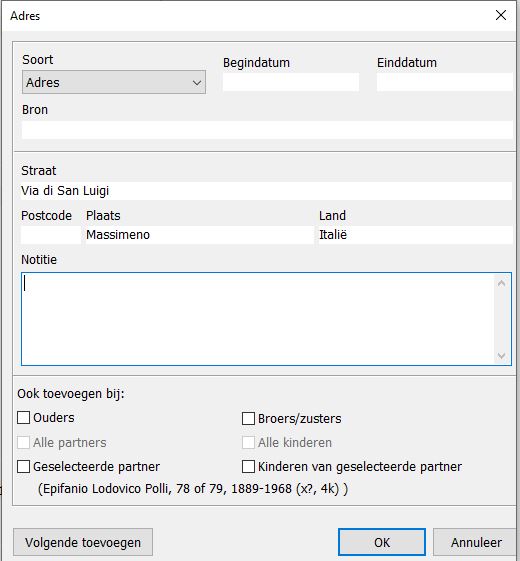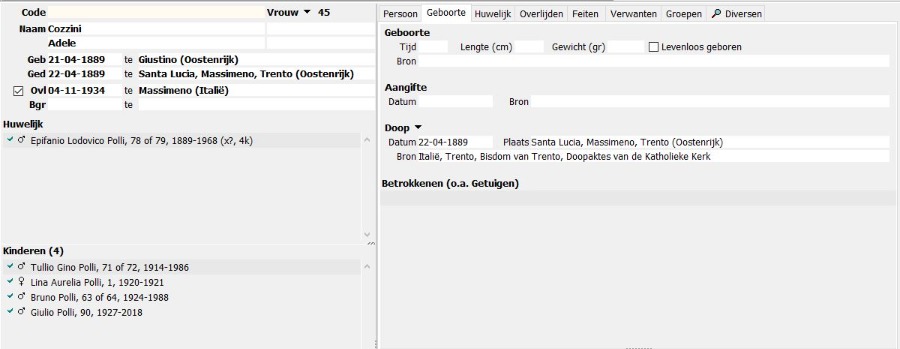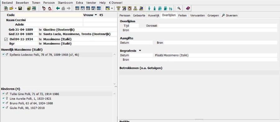 De plaatsaanduiding Massimeno (Italië) verschijnt op dit moment omdat ik het bij geboorteplaats zo heb ingevoerd.