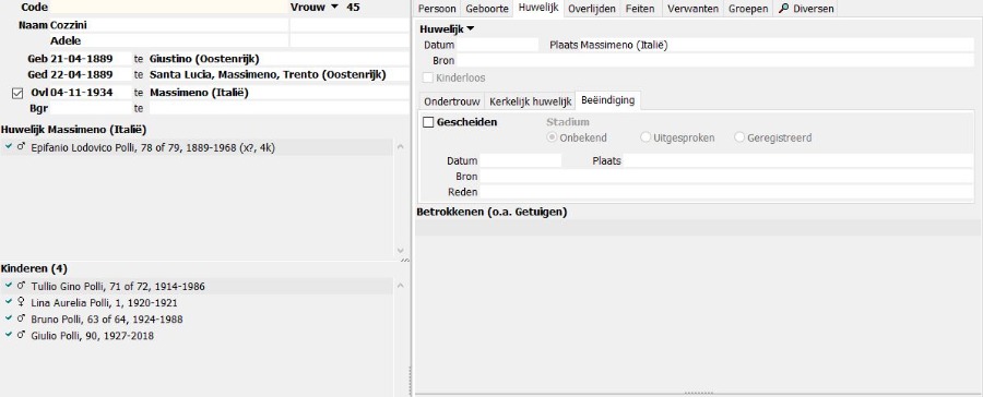 Omdat er geen (staat) en landvelden zijn in het hoofdscherm heeft dat de volgende uitwerking op het tabblad Huwelijk en Overlijden,