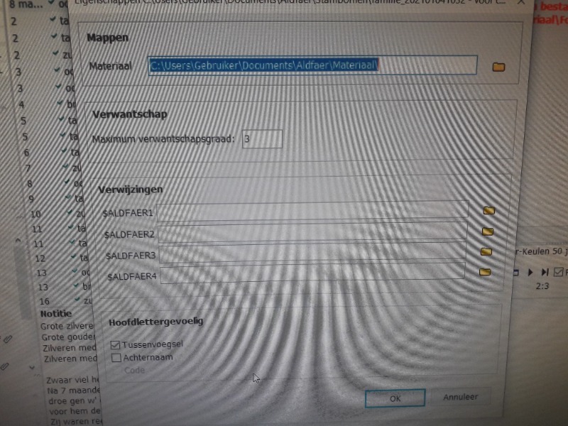 M'n stamboom bestaat al jaren en heb hierin een kleine duizend foto's, waarbij in Aldfaer op één of andere manier na de up-date, de verbinding is veranderd.