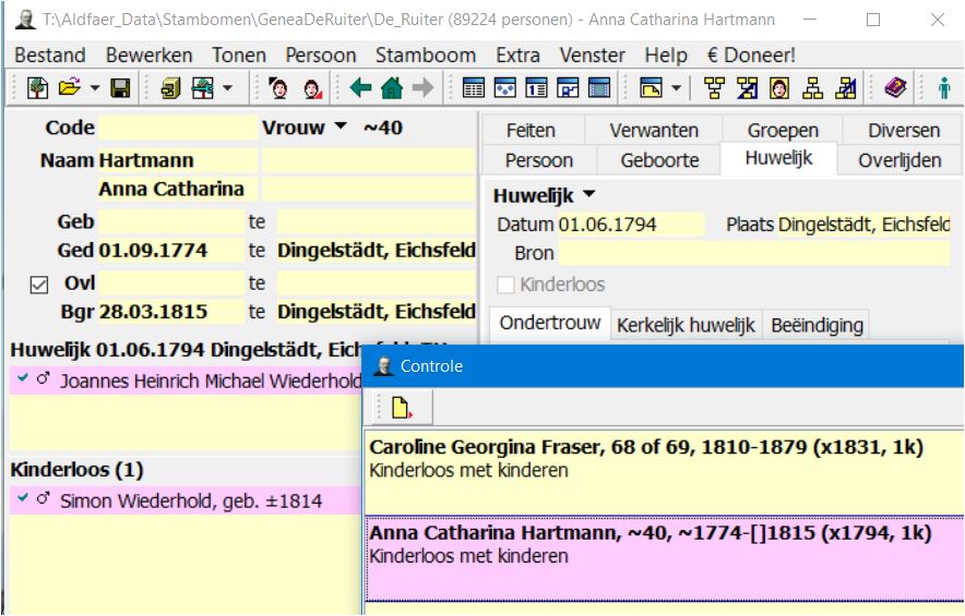 Controleer gegevens - fouten in Database - foutmelding Kinderloos met kinderen