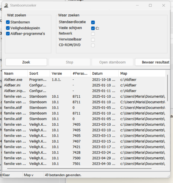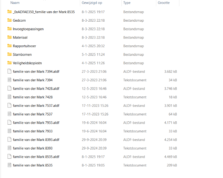 Alle stamboombestanden *.aldf horen in de map stambomen te staan.