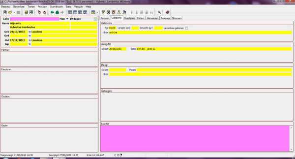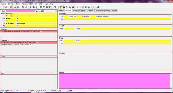 Ik merk dat ik voor sommige kinderen, wel de ouders in mijn personenlijst kan aanklikken, maar dat op de persoonskaart, deze ouders niet tevoorschijn komen. Ga ik naar de personenlijst en dubbel klik ik op de vader bvb. dan krijg ik de persoonskaart waar dat kind wel bijstaat. Klik ik dan weer op dat kind, dan verdwijnen deze ouders weer van de persoonskaart van dat kind. Dat gebeurt niet met elk kind, maar met sommige personen. Vervelend.