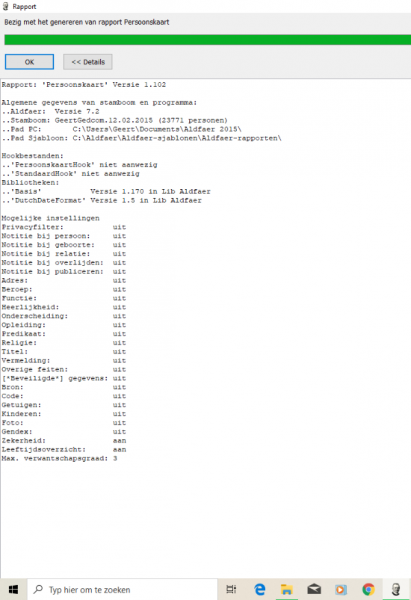 Aldfaer opnieuw installeren heeft geen zin. Controleer of Extra > Instellingen > Bestanden > Rapporten staan zoals in bijlage. Controleer het pad voor Veiligheidskopieën en voor materiaal bij Stamboom > Eigenschappen > Materiaal.