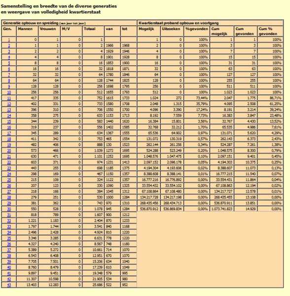 Dit was het sjabloon statistiek kwartier die bij zeer veel generaties afgebroken moest worden, en ik niet verder kwam dan 16 generaties dacht ik vorig jaar.