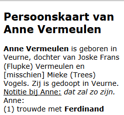 23 feb 2020 13:41 - 23 feb 2020 13:41Dick Krabbendam schreef : Ik wil graag ....dat de enkele tekst "xxx is overleden" weggelaten wordt, wanneer enkel en alleen het ovl-vinkje aanstaat, en er geen andere velden rondom overlijden zijn ingevuld.