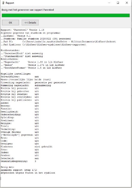 wanneer ik bij kwartierstaat rapporten opvraag krijg ik telkens" afgebroken fout wegen sjabloon"